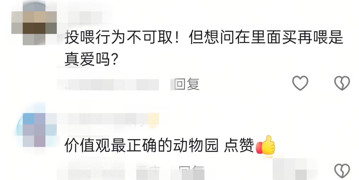评论区一些网友称标语“豪横”,动物园很有趣。但也有人提出,即便自己不带,动物园也出售食品供游客投喂,还是一种“强制爱”。
