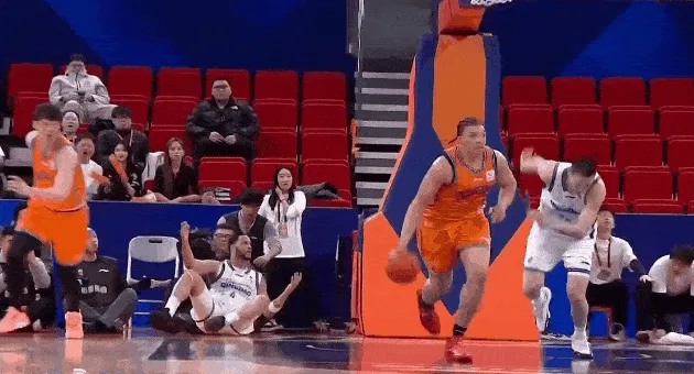 CBA常规赛,上海对阵青岛的比赛正在进行中。